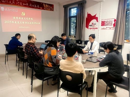召开2025年度党支部书记述职评议会。本科生党支部书记朱文珊、研究生党支部书记弓婧绚、教工党支部书记金小燕依次述职,华体会体育