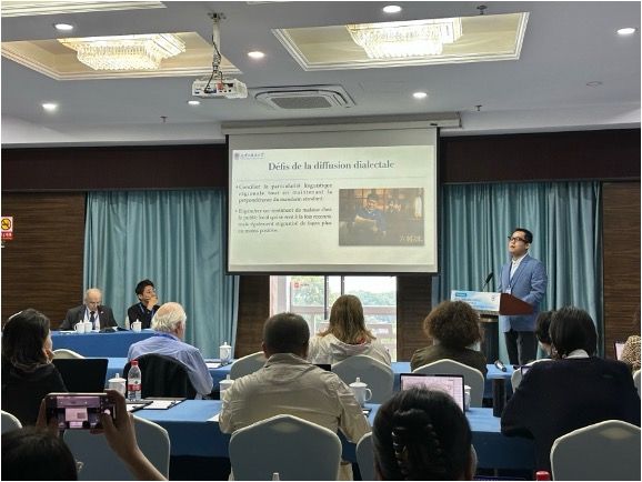 会上,王凝老师分享了题为《媒体方言语言策略研究——以电视剧 <六姊妹> 为例》的研究成果,并主持了 “语言政策研究” 分论坛,同与会专家一同围绕方言与外语传播路径、发展趋势等问题开展深入交流。