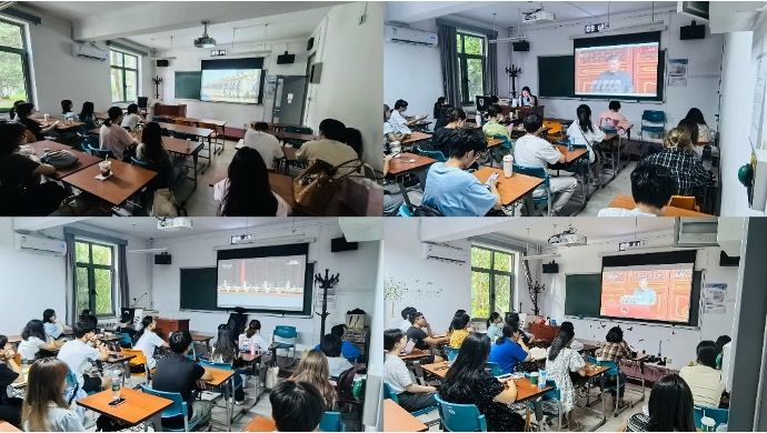 党总支高度重视,设立多个分会场组织全体师生观看现场直播,共同见证这一庄严而震撼的时刻。