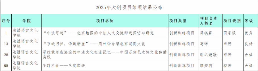 由周祺霖同学主持的国家级创新训练项目“‘中法寻迹’——北京地区的中法人文交流印迹探访与研究”以优秀等级结项。该项目历时一年,深入考察了北京地区中法人文交流的历史印迹。团队采用文献考证与田野调查相结合的研究方法,完成6次实地调研,系统整理中法两国档案、碑刻等文献资料约7万字,形成包括:基于Maptable平台打造的中法交流印迹数据库;3次学术推广讲座、2次成果推广公益活动;与帝都绘工作室合作推出的Citywalk路线等大众化成果展出。同时,周祺霖完成题为《北京正福寺“五位司铎之墓”碑主身份考释》的学术论文,丰富了项目的学术成果产出。“中法寻迹”大创项目的项目成果为促进中法文明互鉴、增强文化自信提供了重要参考,展现了北外学子用外语讲好中国故事的使命担当。