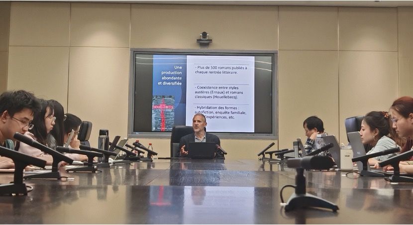 2025年4月23日下午,法国国家科学研究中心(CNRS)现代艺术与文学理论与历史研究中心研究员、思想史与文学史家Alexandre Gefen教授应邀来校,在东院暮思厅为北外师生进行了题为“21世纪法国文学概况”的讲座。讲座由华体会体育